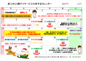12月2日(火曜日) 創作レク: 季節にあった作品を皆さんと作りましょう。 10日(水曜日) クリス