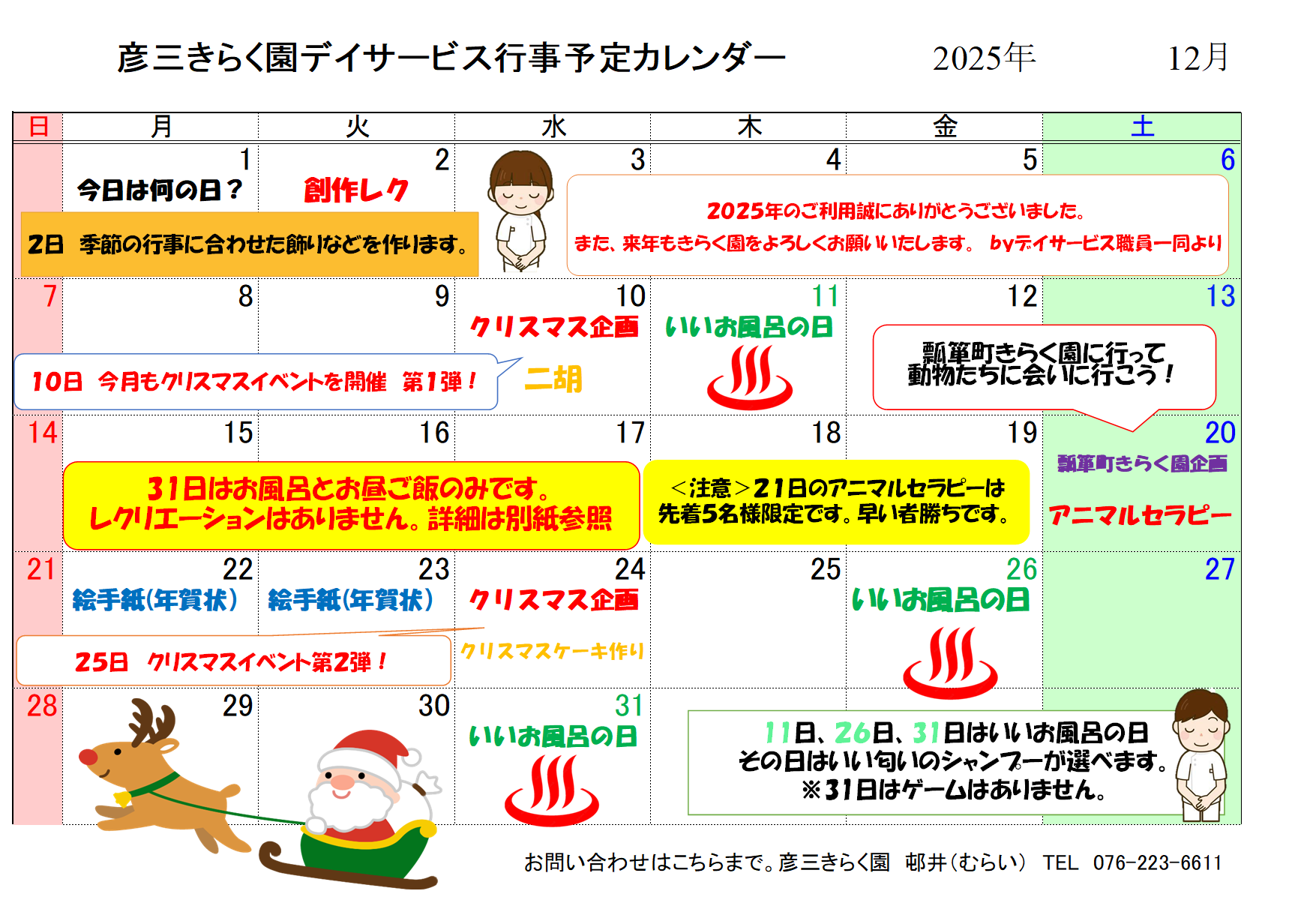 今年最後のいいお風呂の日となりました。今月は11日と26日と31日となります。